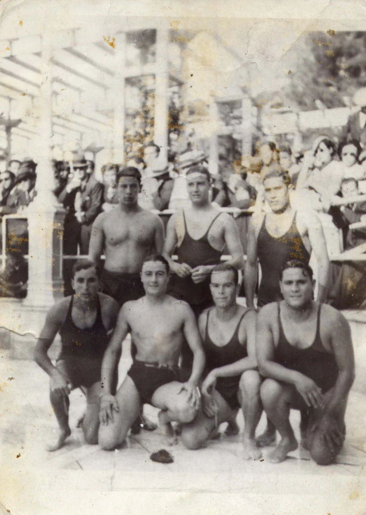 Elie Memmi (debout à gauche) avec ses coéquipiers de water-polo du club La Méduse à Tunis en 1938.